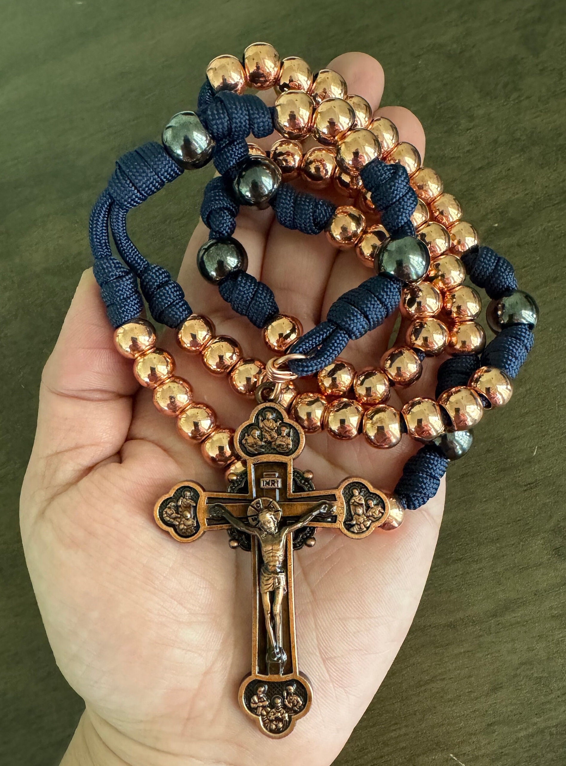 This GORGEOUS rosary is a gift for my husband as he is baptized and brought into the church this Easter (Praise God!) It is well made, sturdy, and a large size- exactly what I was looking for. He loves it!
