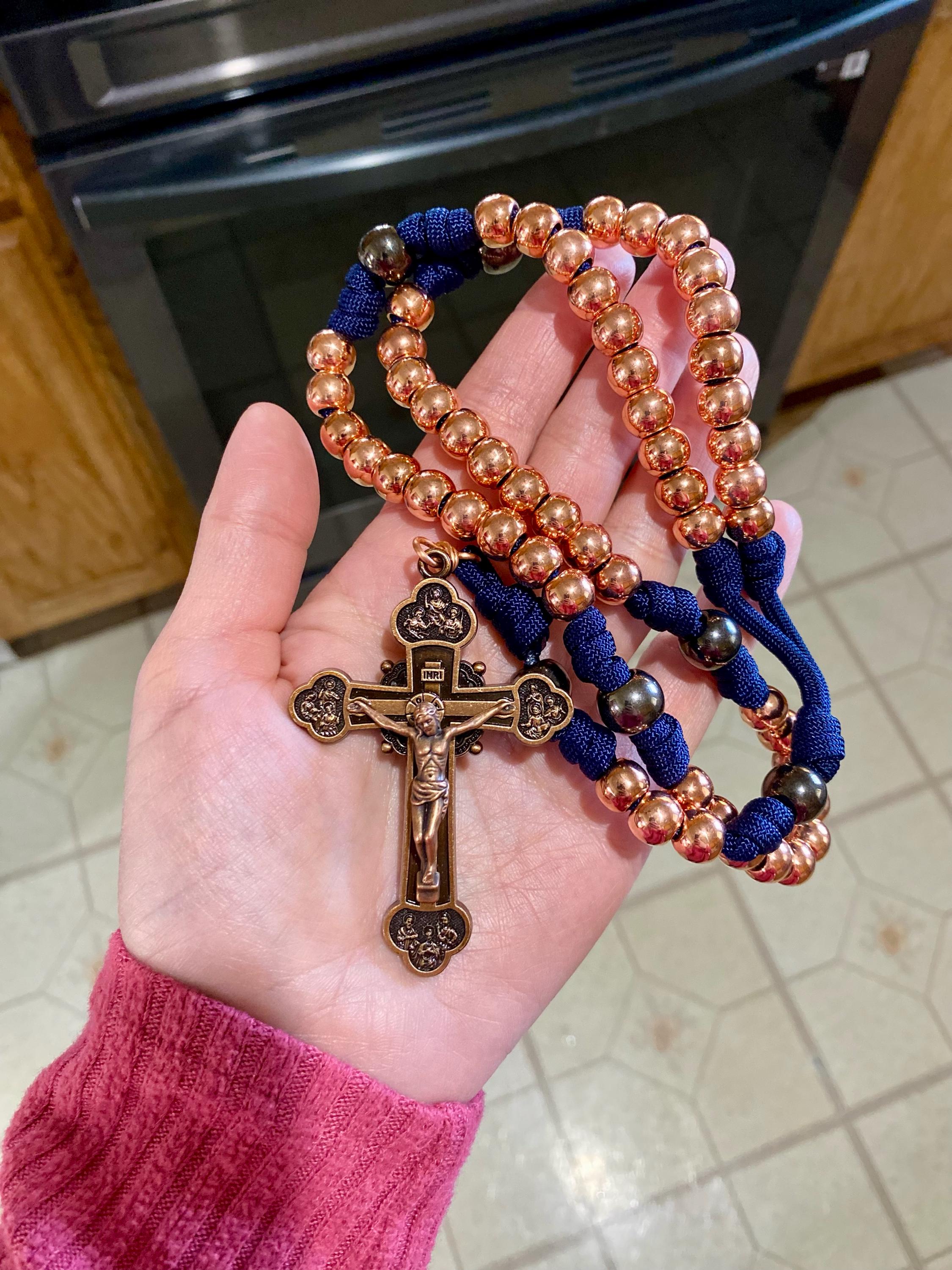 I absolutely love this item and enjoy holding it in my hands as I pray! The beads are strong and the paracord is tightly wound and I can even tell where I am when I pray it in the dark! This rosary is a winner! Yes, I will order from them again! Linda Curtiss