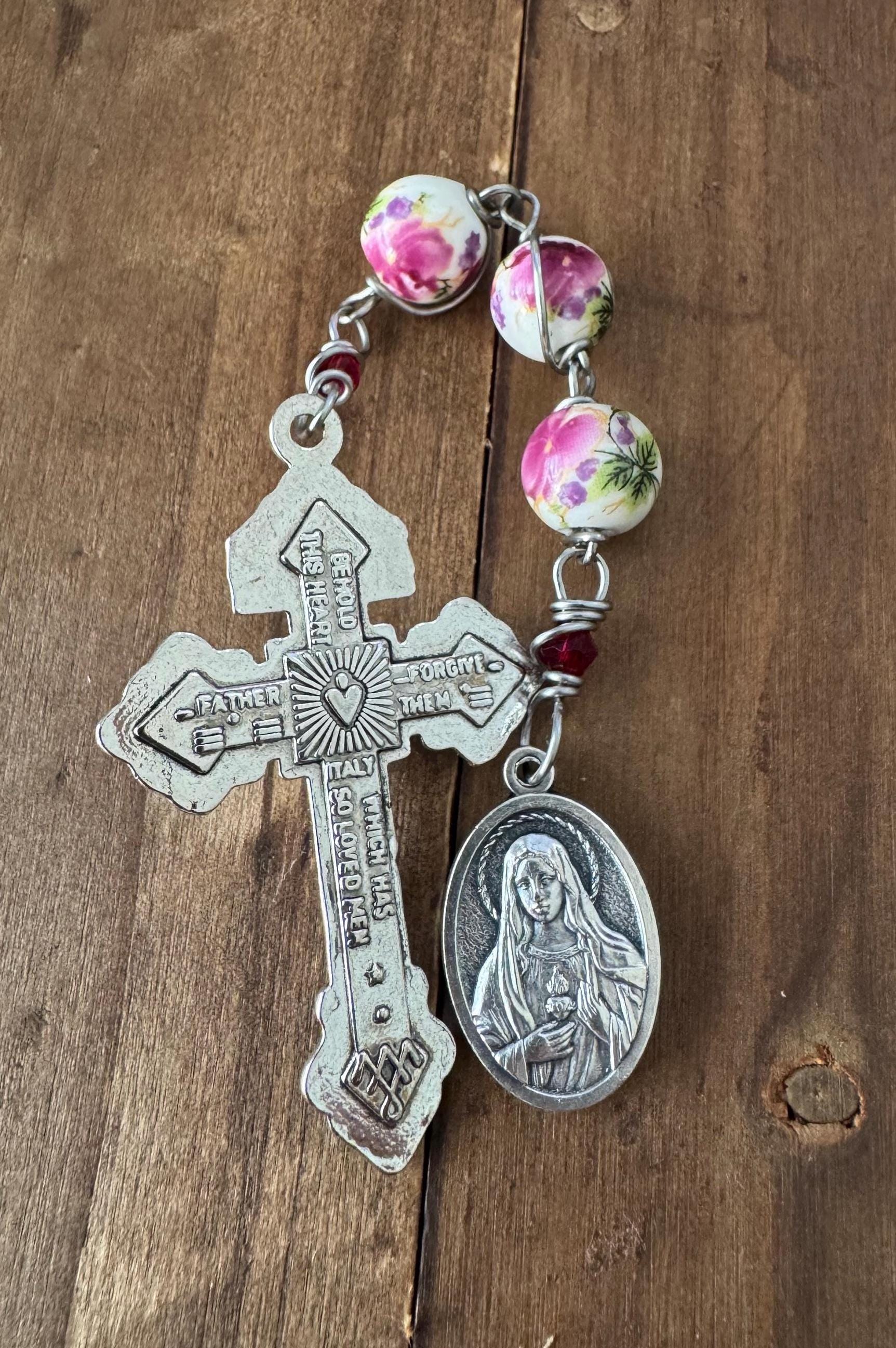 This beautiful Chaplet is made of 10mm ceramic beads, stainless steel wire, 1 inch medal and 2 inches crucifix.