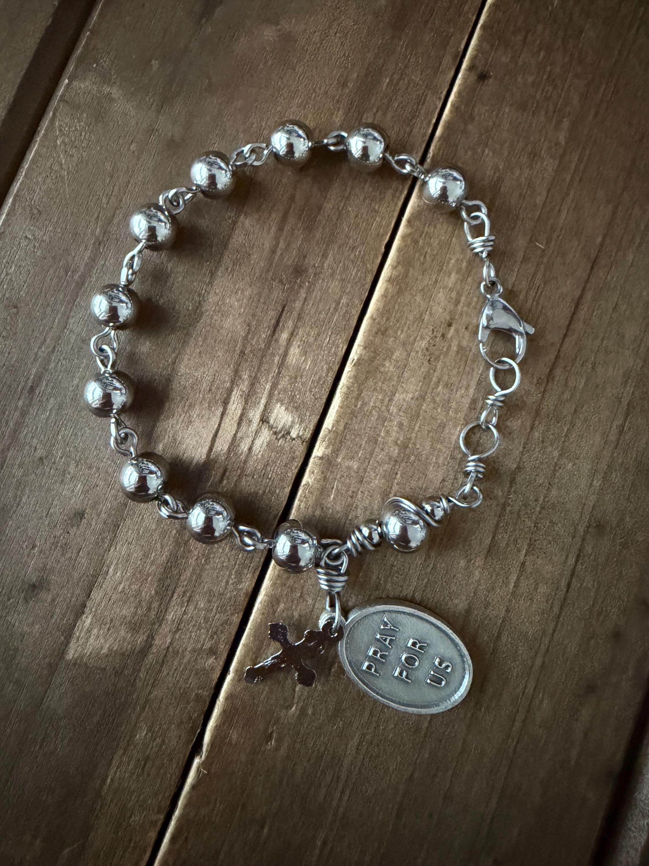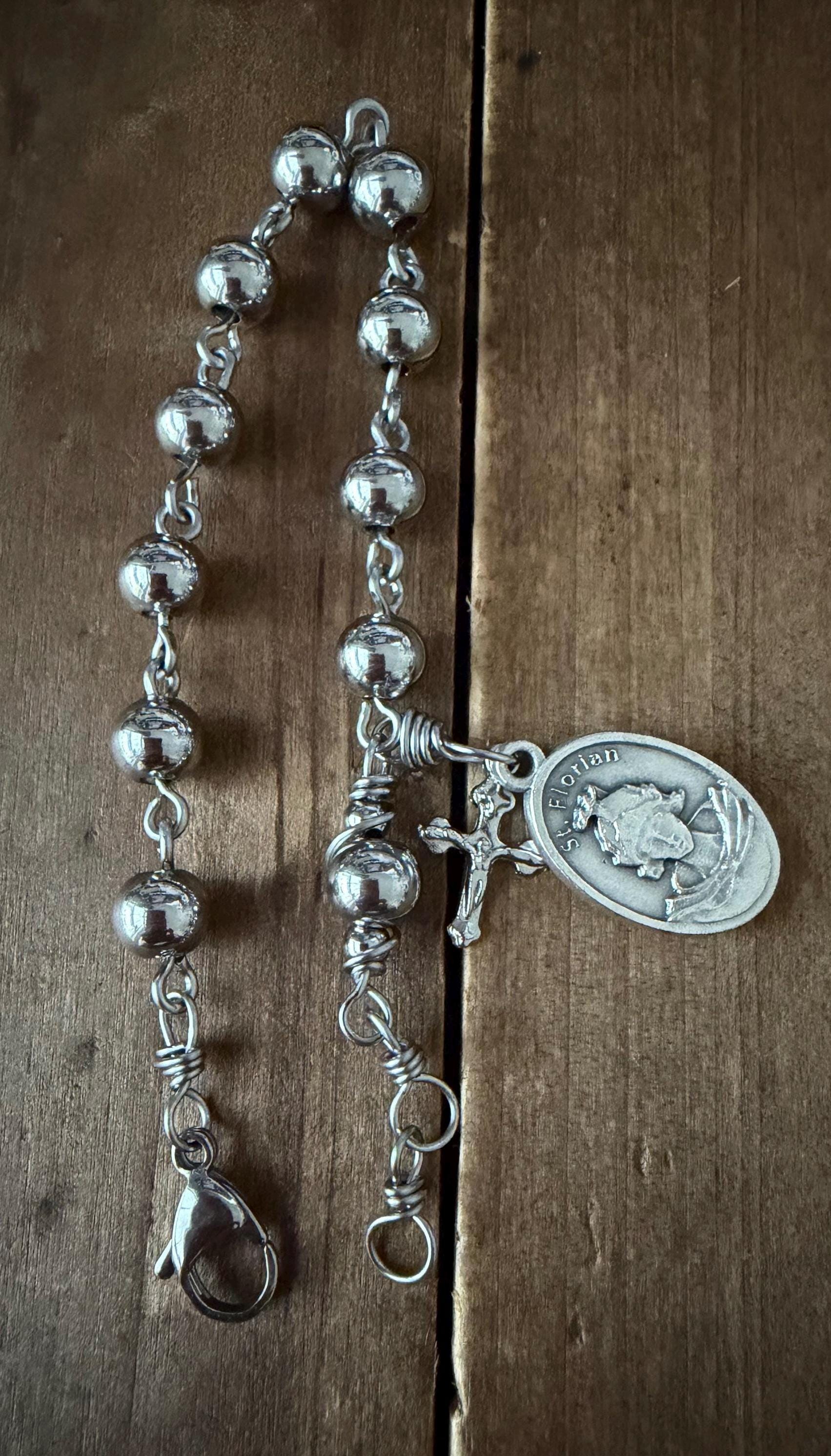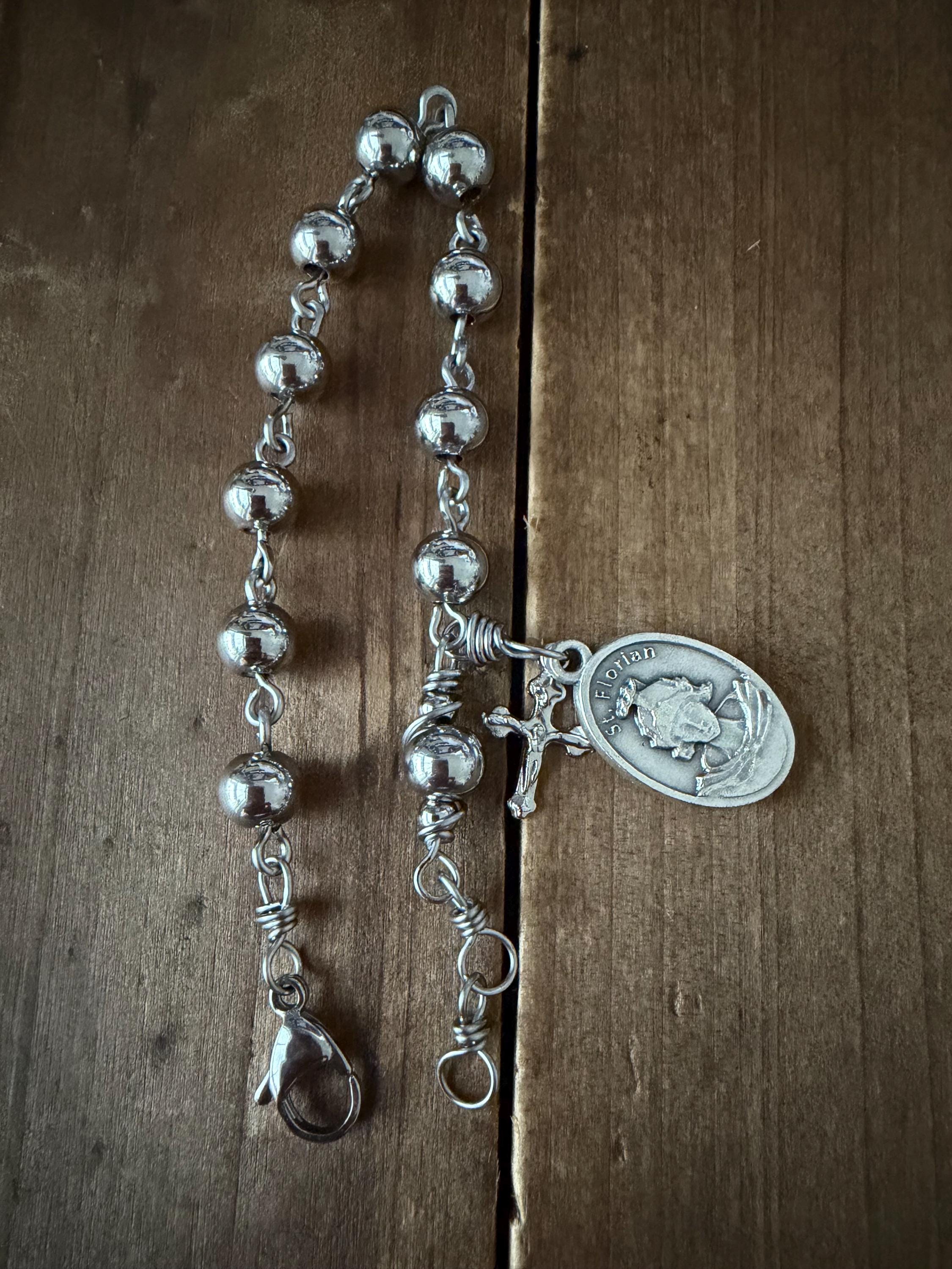 Handmade St. Florian Rosary Bracelet: Stainless Steel Beads, Firefighter Bracelet
