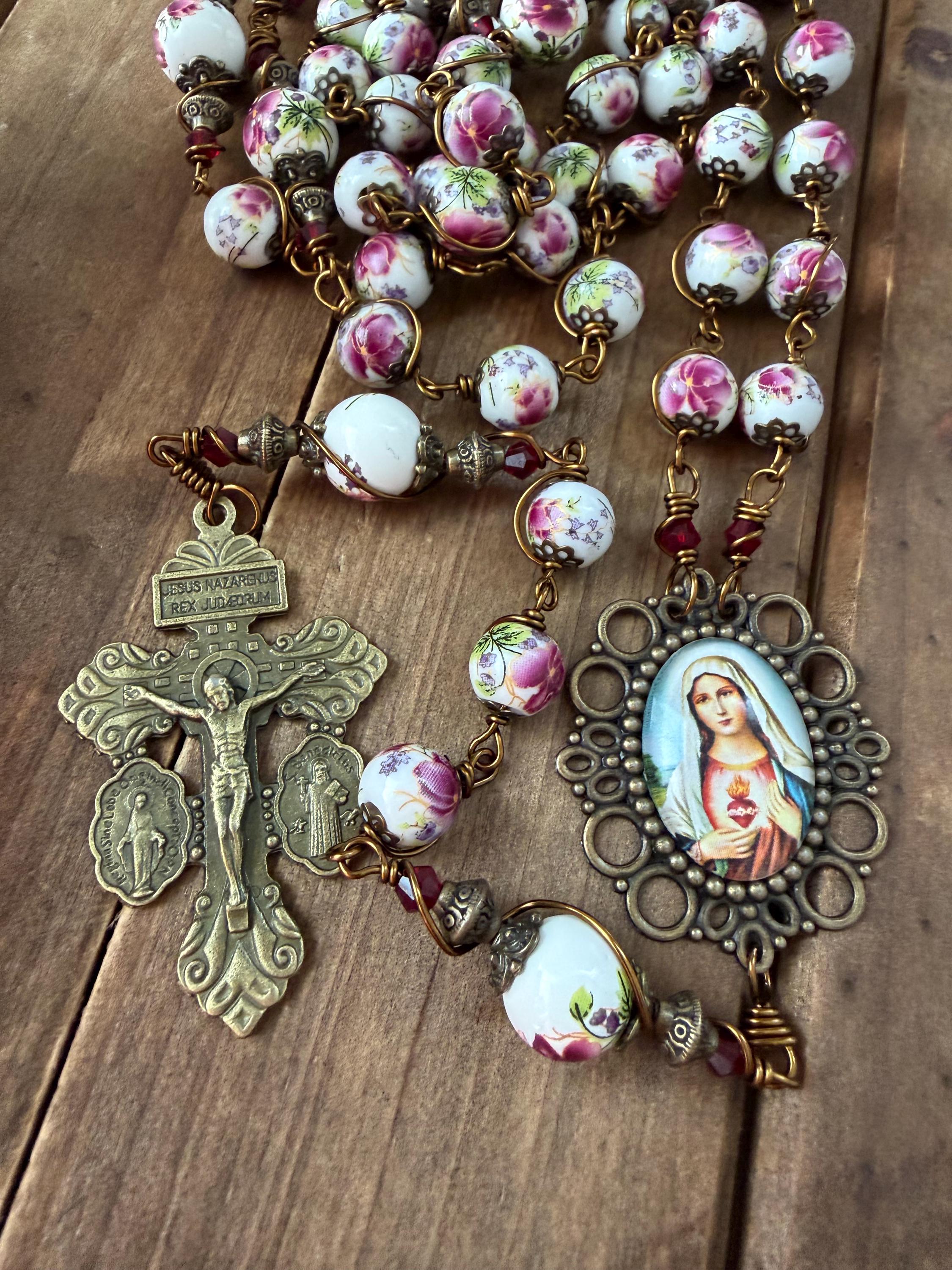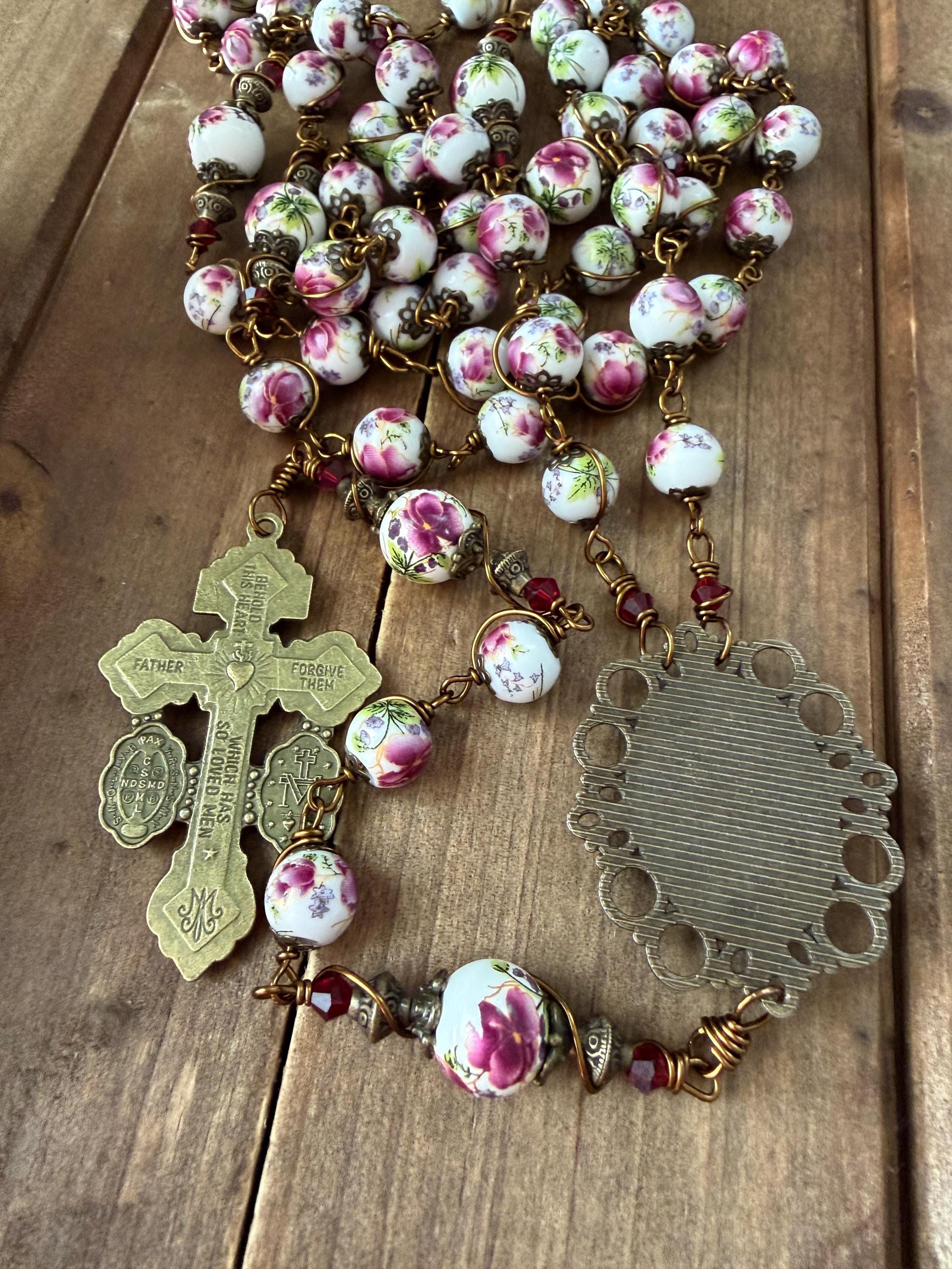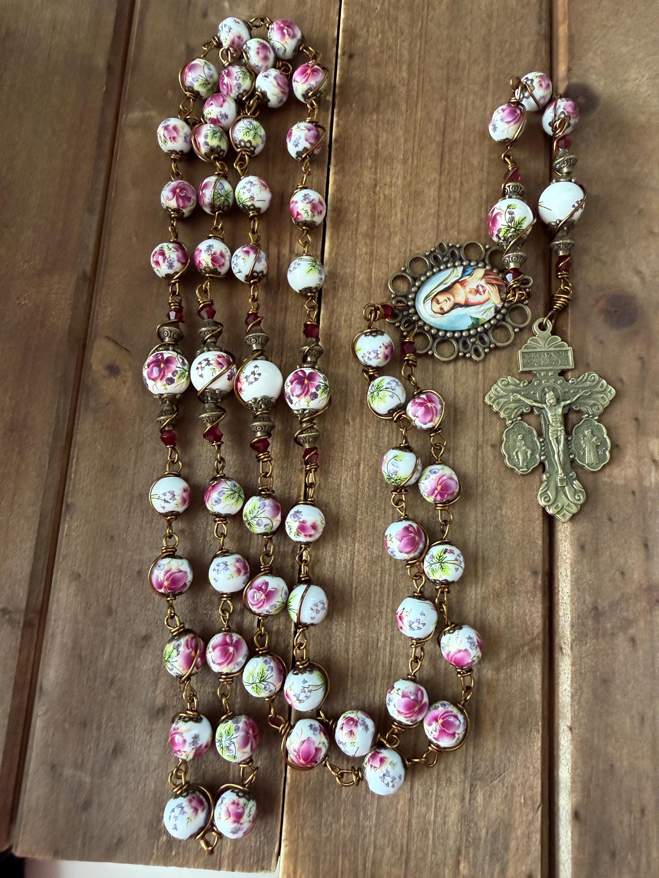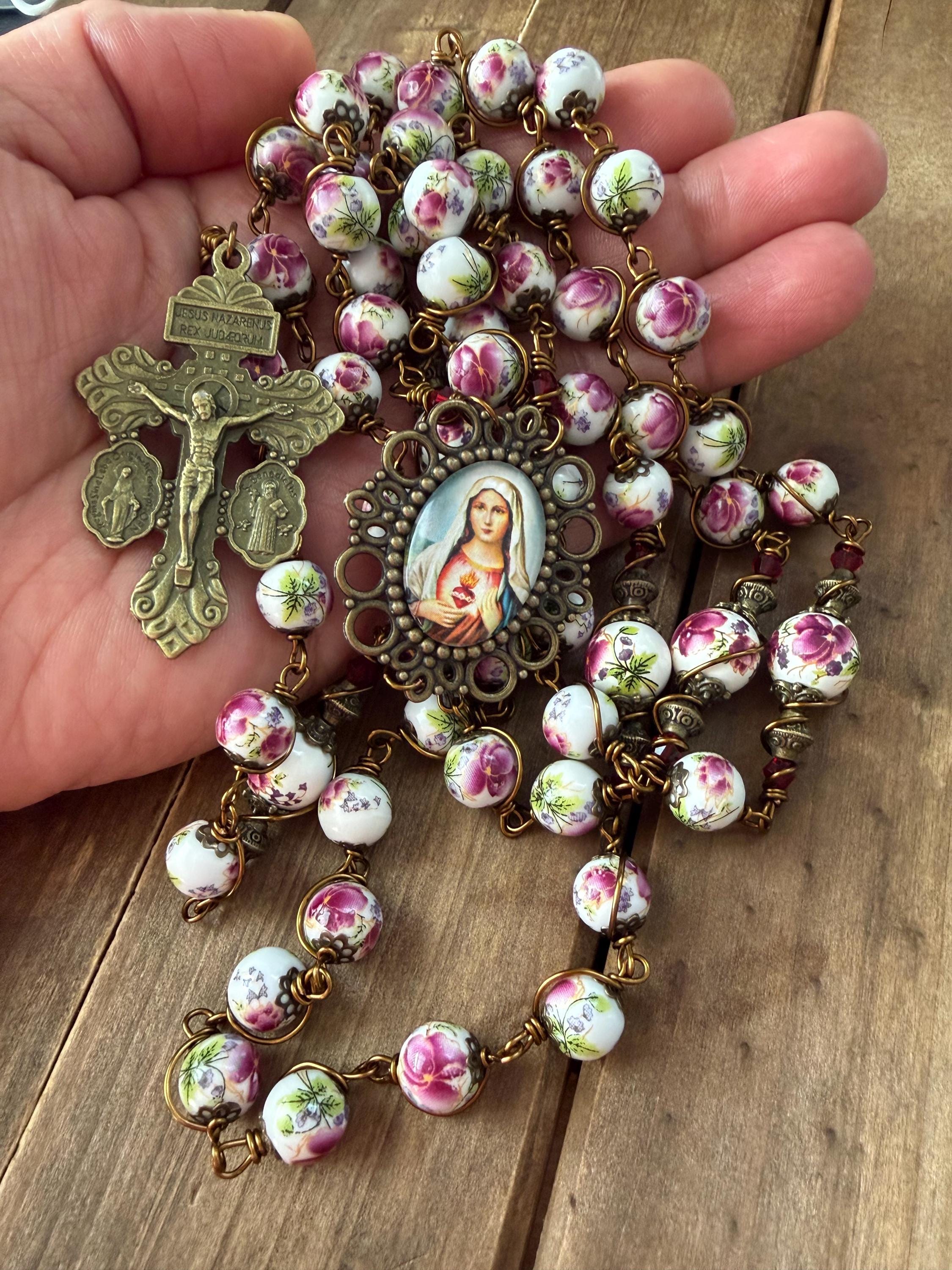 This beautiful handmade rosary is made with 10mm ceramic beads, 4mm crystals and 2 inches crucifix.